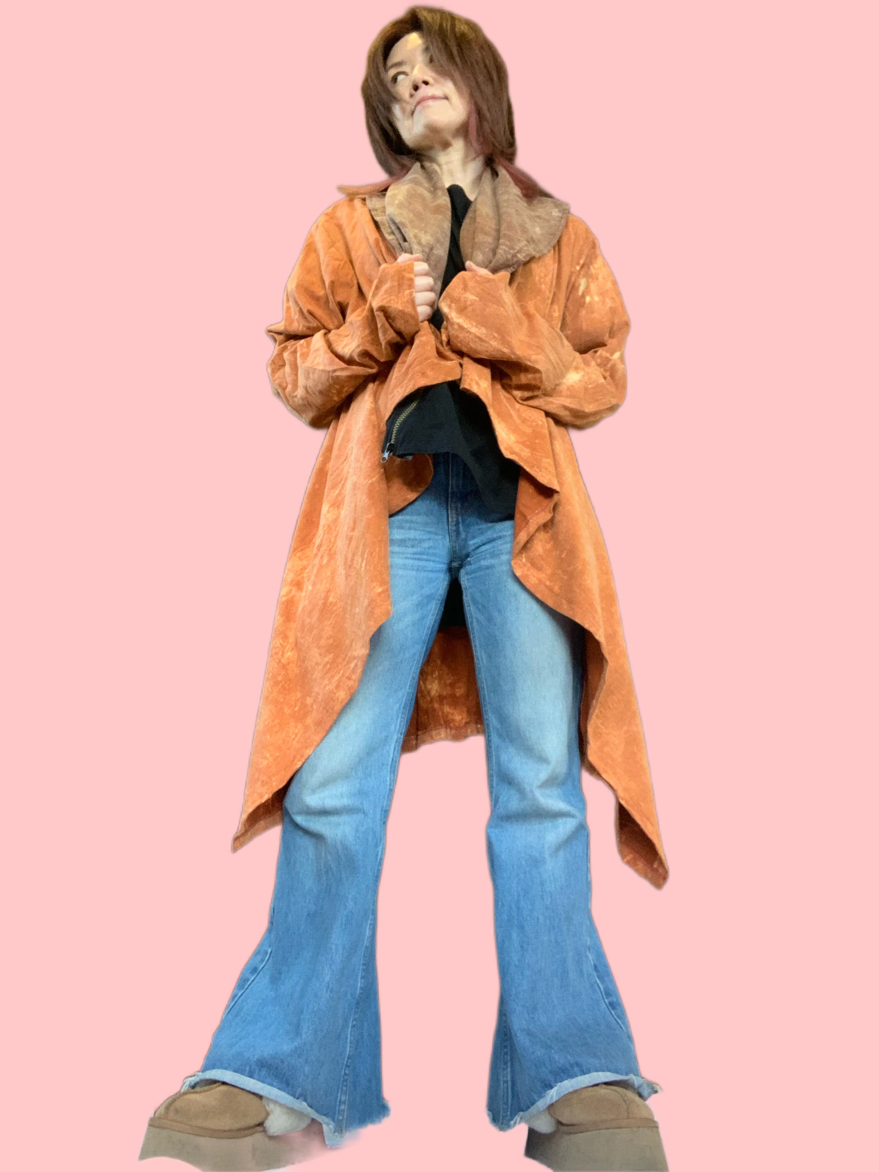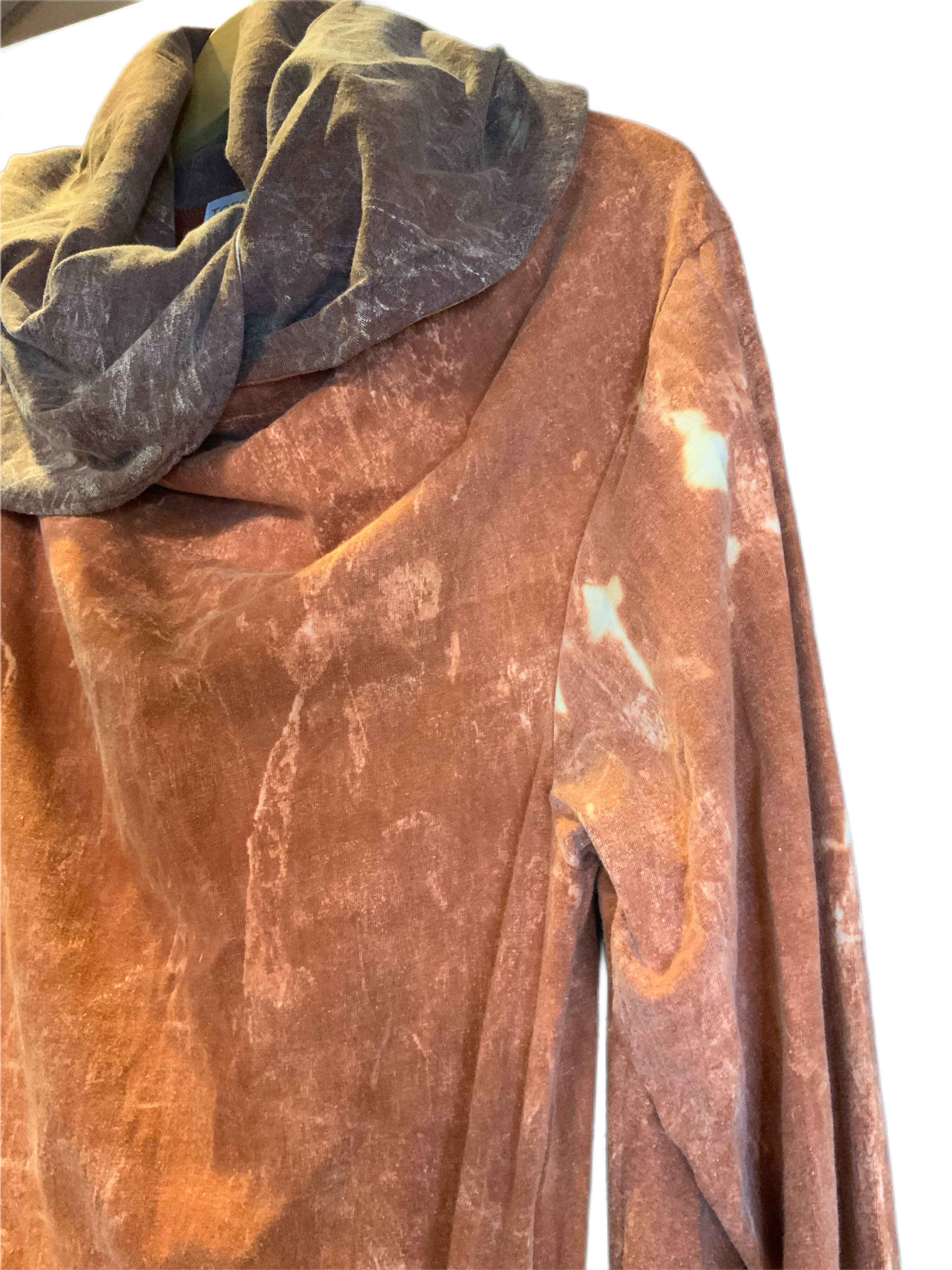 オレンジStoneWashedタイダイにブラウンStoneWashedタイダイのフードがついたものと、