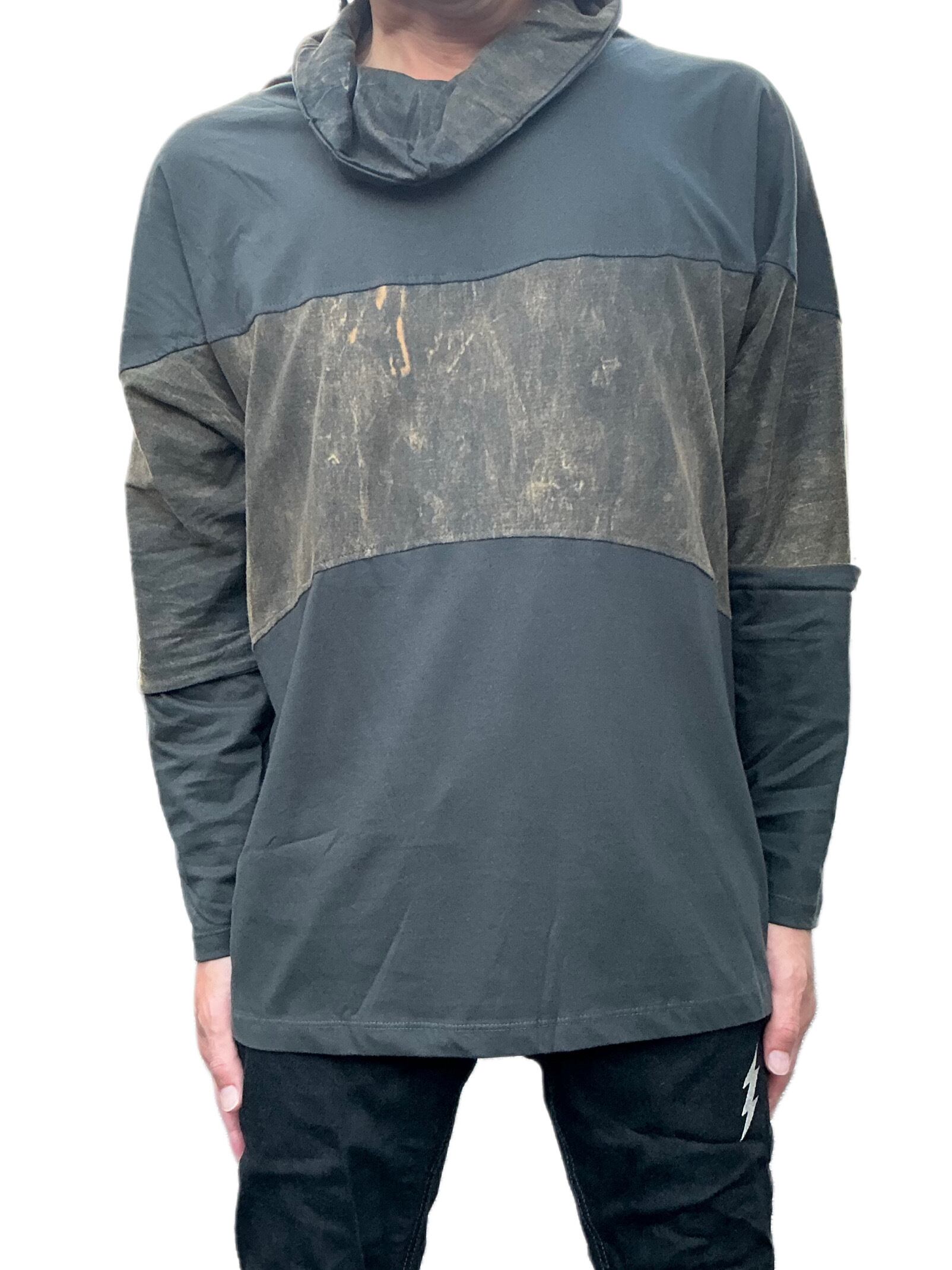 ゆったりした2色使いのタートルネックが